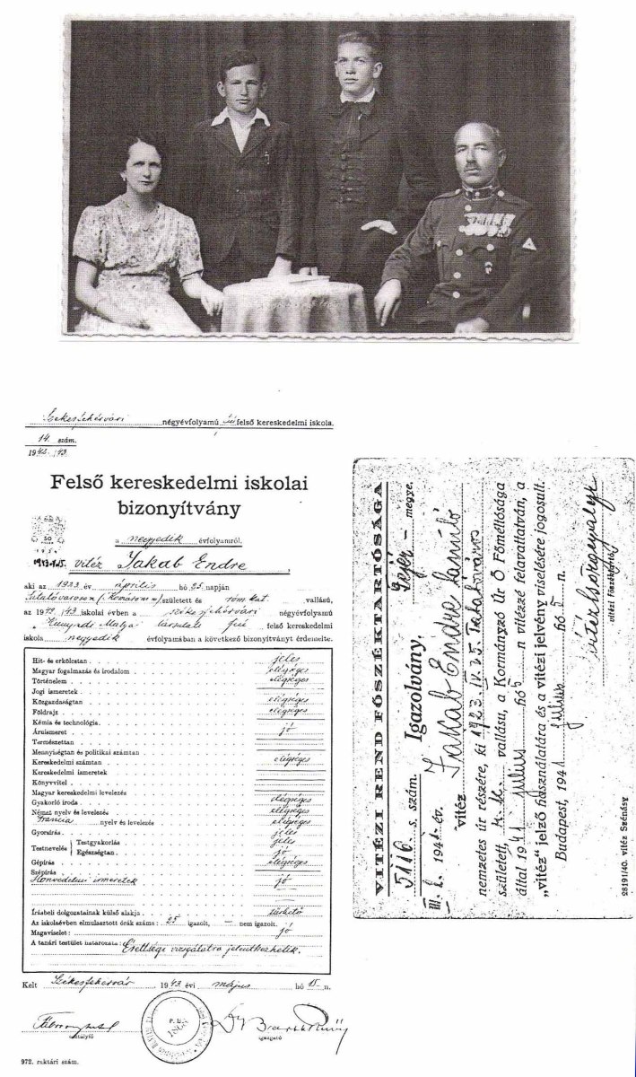 Gyermekkorát (édesapja Vitéz Jakab István vezényelt katonatiszt) az ország több városában töltötte. 1941. július 05-én édesapja révén vitézzé avatták.